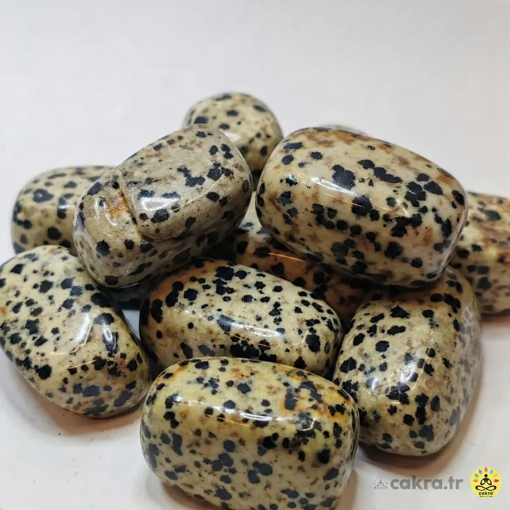 Dalmaçyalı Jasper (Dalmaçyalı Taşı), zihindeki aşırı analitik düşünceleri susturmak ve neşeyi hayatınıza davet etmek için müthiş bir enerjisi vardır. Kendinizi duvarların arasına sıkışmış veya enerjinizi tükenmiş hissettiğinizde, bu tamburlu kütleyi avucunuzda tutarak meditasyon yapın. Kök çakrayı dengelerken aynı zamanda aurayı mühürleyerek negatif enerjilere karşı görünmez bir kalkan oluşturur. Hayata karşı daha esnek ve oyuncu bir bakış açısı geliştirmek için çalışma masanızda bulundurmanız önerilir.