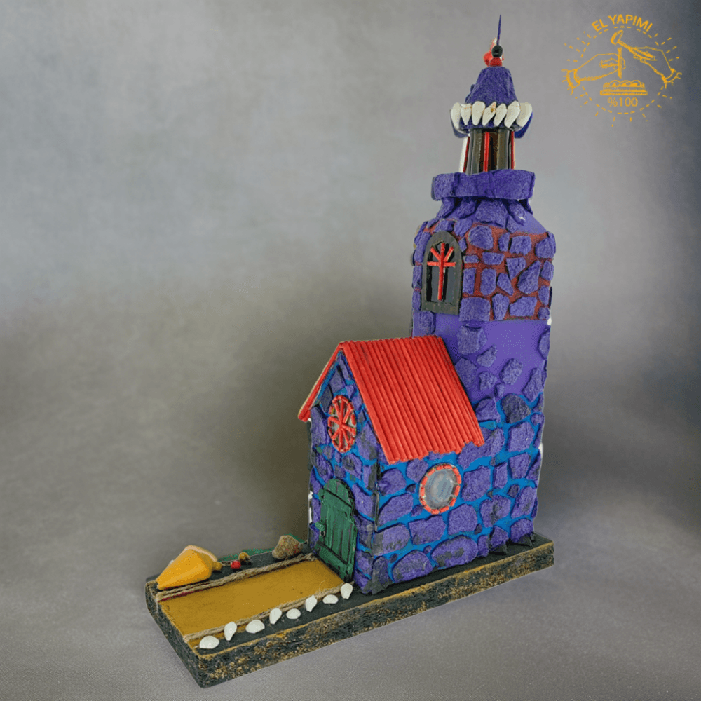 Deniz fenerinin gövdesi, gerçek taş dokusunu andıran özel bir malzeme ile kaplanmıştır. Mor ve mavi tonlarının hakim olduğu bu doku, denizlerin derinliğini ve gizemini yansıtmaktadır. Deniz fenerinin tepesinde yer alan beyaz kule ve sivri uçlu tepe detayı, deniz fenerlerinin ikonik görünümünü tamamlar.