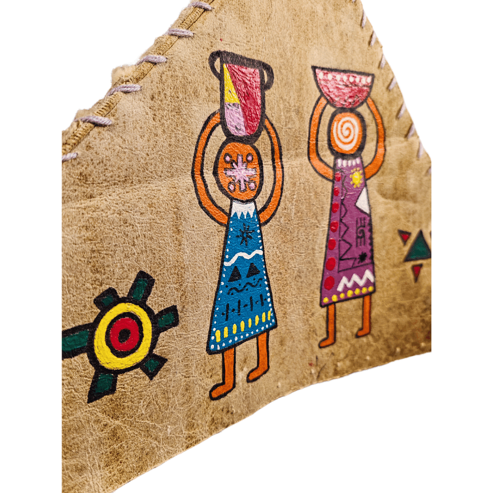 El Yapımı Doğa Ananın Kucağı Duvar Süsü. Doğanın ve kültürlerin iç içe geçtiği, el yapımı bir sanat eseri olan bu duvar süsü, evinizin veya iş yerinizin atmosferini tamamen değiştirecek. Gerçek inek derisi üzerine özenle işlenmiş etnik desenleri ile dikkat çeken süs, bohem ve şamanik tarzların bir araya geldiği özgün bir görünüme sahip. Doğal malzemelerden özenle üretilen bu ürün, hem estetik bir detay hem de derin anlamlar taşıyor.