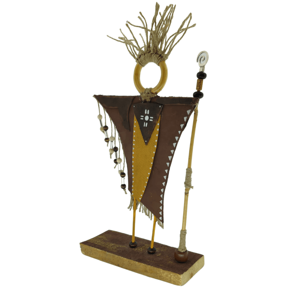 - Malzeme: Ahşap, deri, doğal ipler, boncuklar