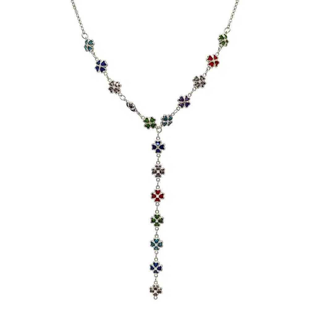 Gümüş Rengi Renkli Taşlı Yonca Y Kolye: Şans ve Zarafetin Işıltısı