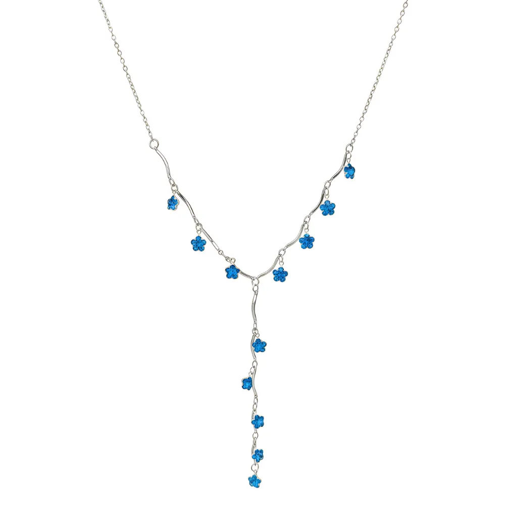 Gümüş Rengi Mavi Çiçek Y Kolye, çok yönlü tasarımı sayesinde gardırobunuzdaki birçok parçayla uyum sağlar.