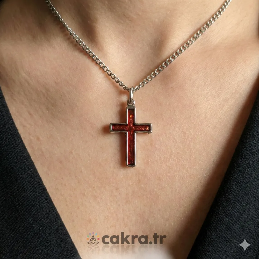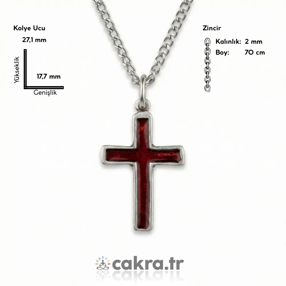 Tutkunun derin kırmızısı ile klasik haç motifini buluşturan Kırmızı Mineli Haç Kolye, alternatif stil ve gotik dokunuş arayanların gardırobuna güçlü bir ifade ekler. Zarif kırmızı mine kaplama ile haç formunun çarpıcı kontrastı birleşir; bu kolye, sadece bir aksesuar değil, aynı zamanda karakterinizi dışa vuran bir imzadır. Metal zincir üzerindeki mineli haç detayı, hem günlük kombinlerde hem de özel gecelerde dikkat çekici bir odak noktası olur. Cesur stilinizi ortaya koymak isteyen kadın ve erkeklere uygundur.