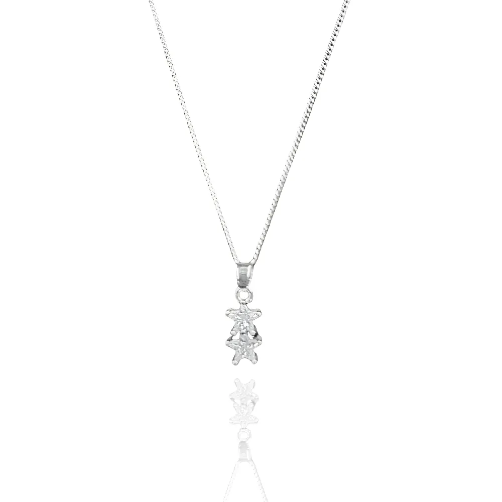 Kristal Taşlı İkili Minimal Yıldız Gümüş Kolye