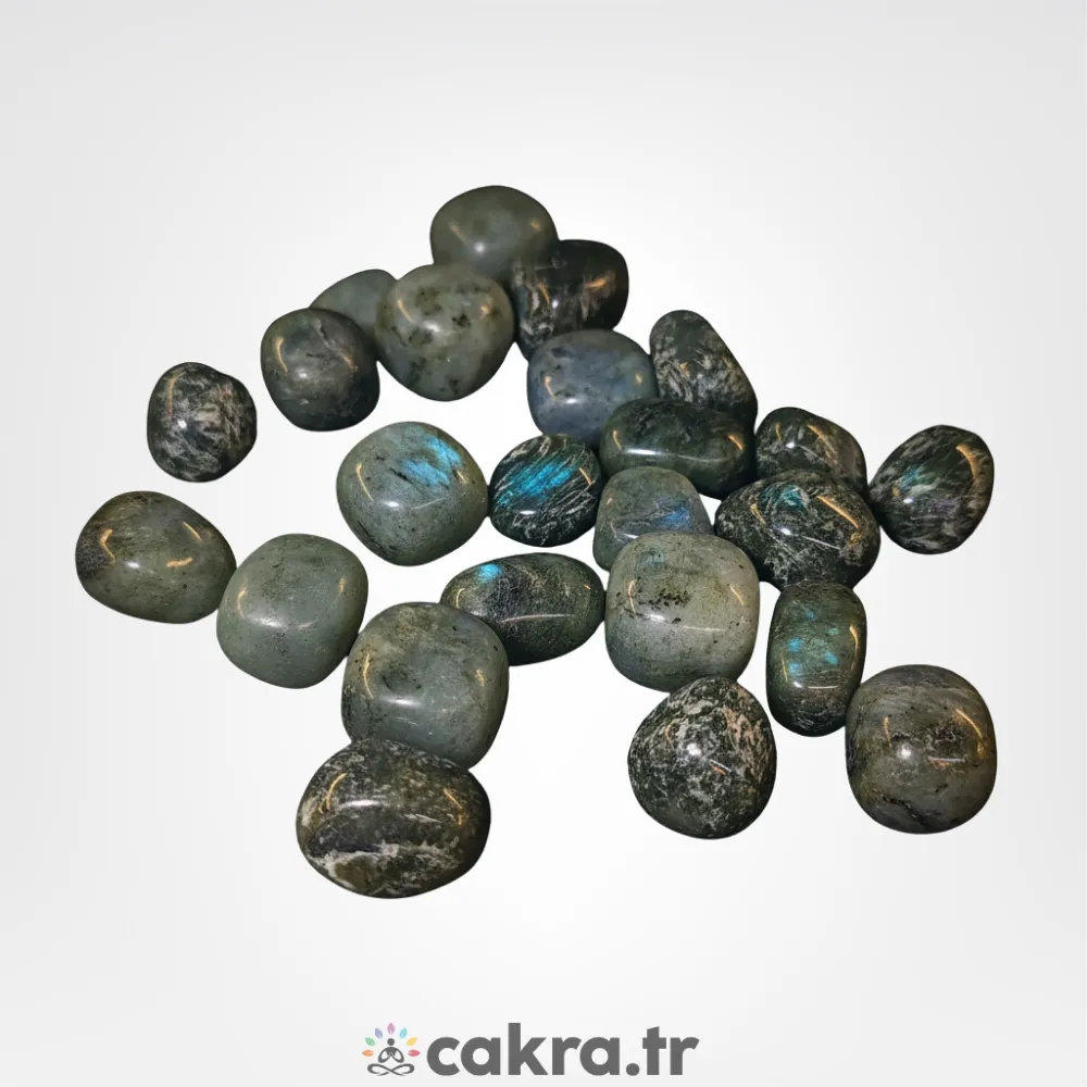 Labradorit taşı tamburlu 1–2 cm, doğal taşlar arasında benzersiz renk yansımaları ve pürüzsüz yüzeyiyle öne çıkan özel bir üründür. Tamburlama işlemi sayesinde taşın yüzeyi doğal yapısı korunarak yuvarlatılmış ve elde rahatça taşınabilecek bir forma getirilmiştir. Bu işlem, labradoritin ışıkla birlikte ortaya çıkan mavi, yeşil ve altın tonlarındaki yansımalarını daha belirgin hâle getirir.