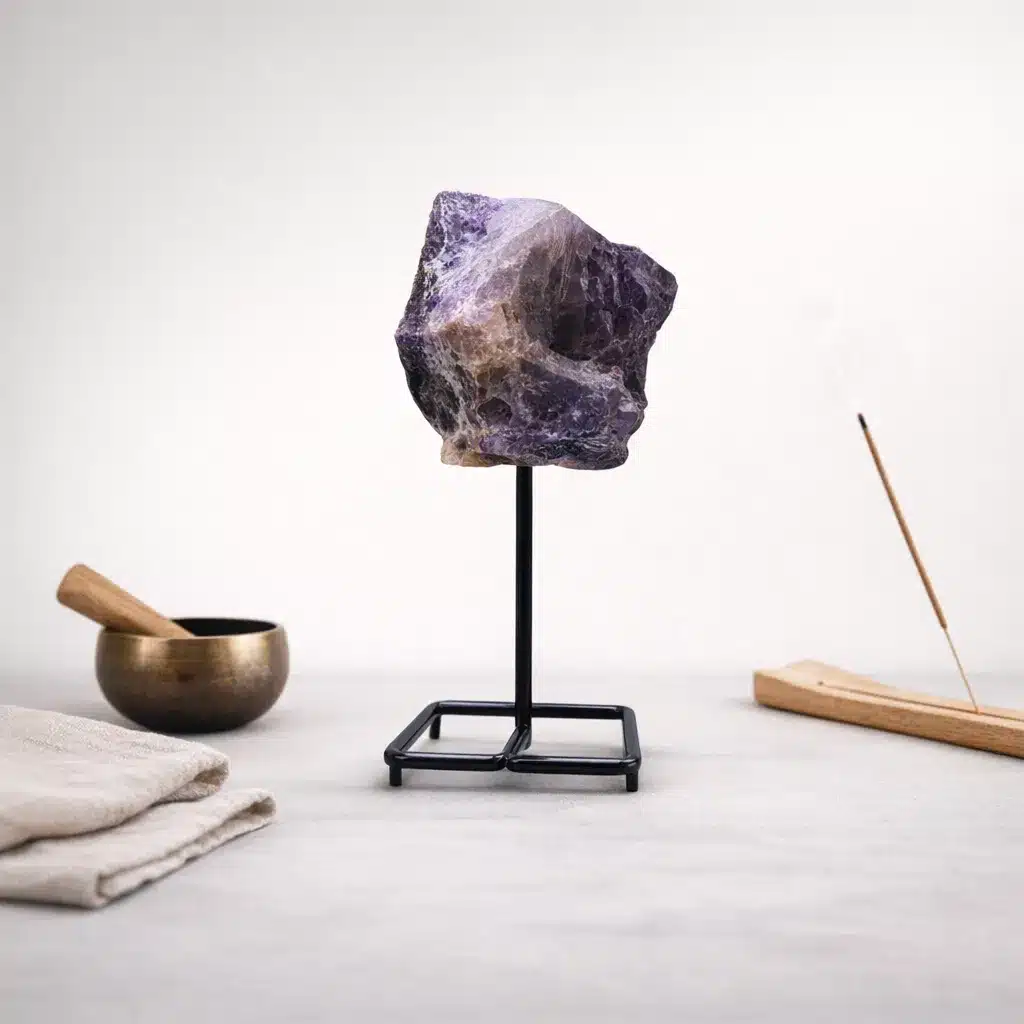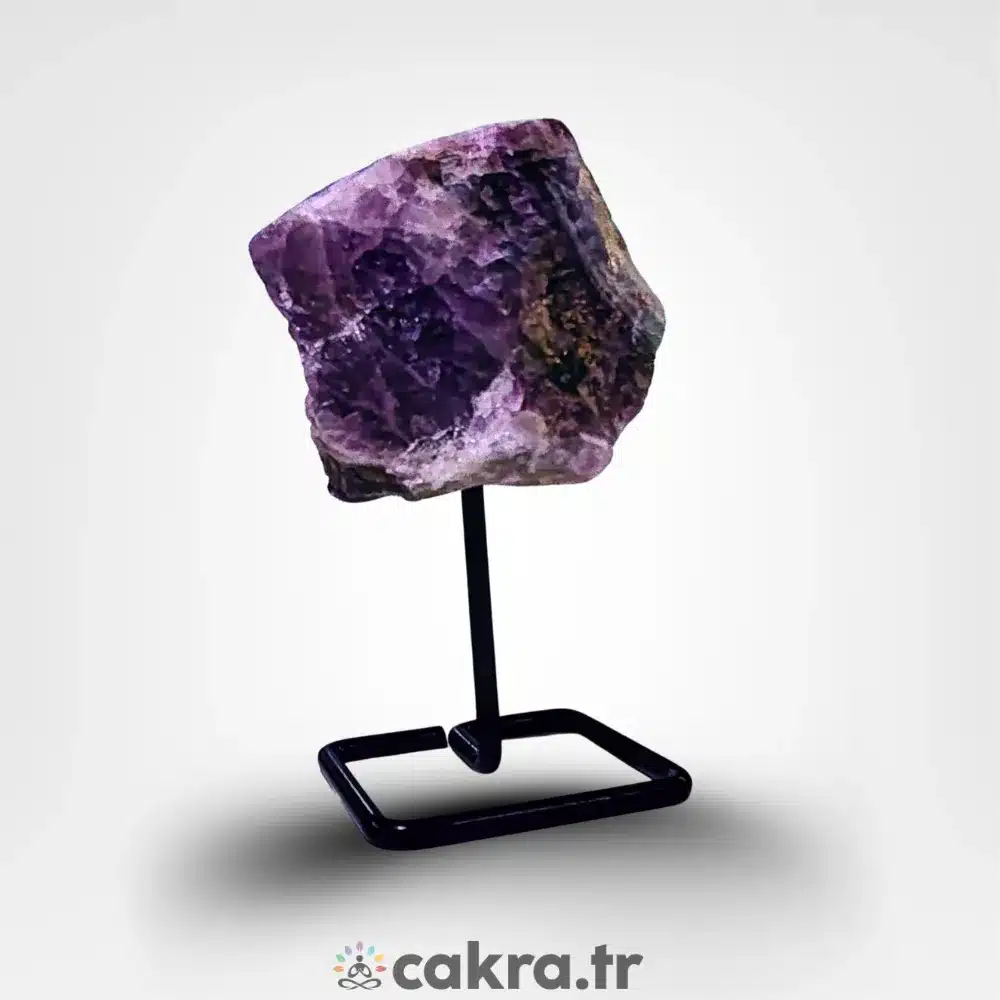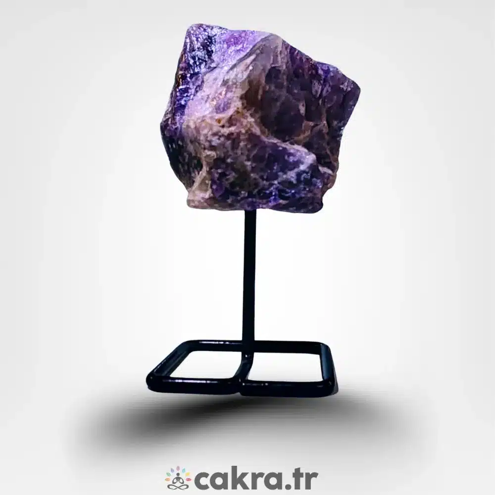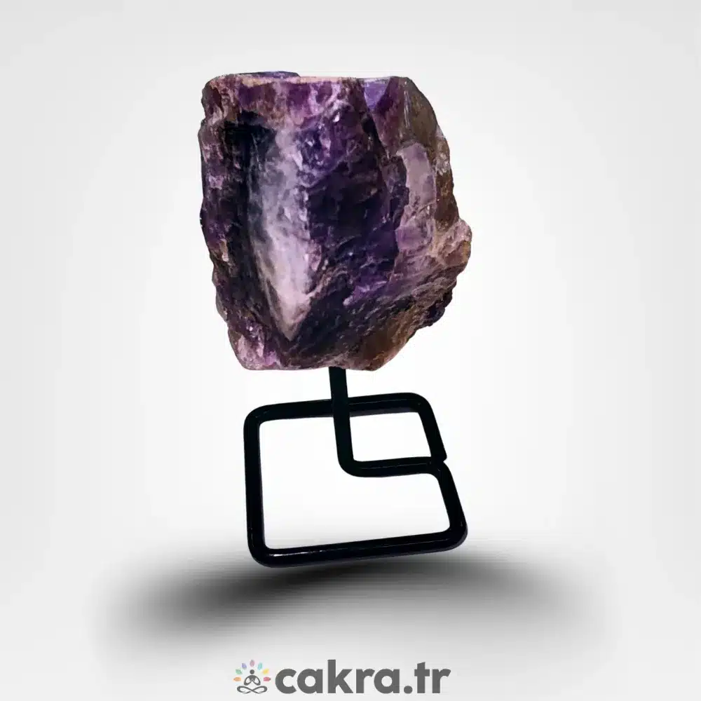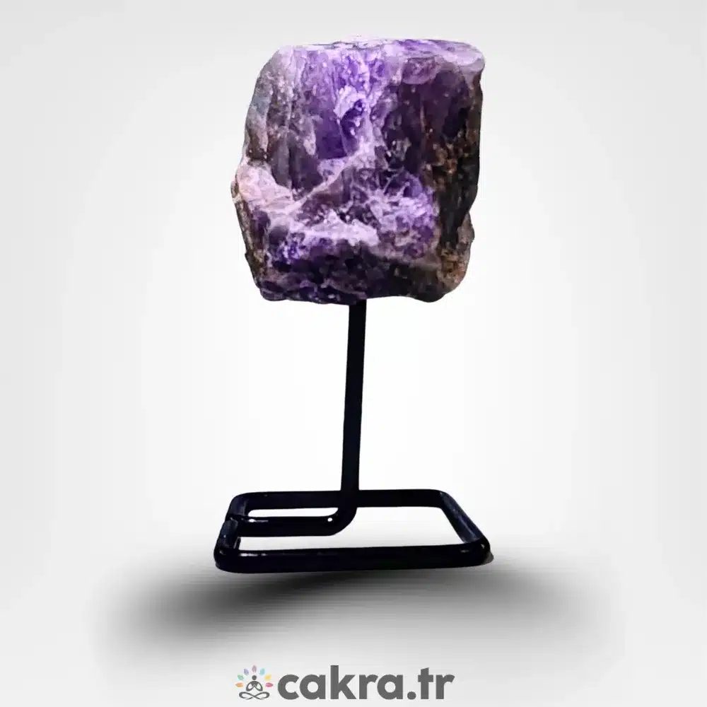 Hem spiritüel anlamda hem de dekoratif amaçla kullanılabilen stantlı ametist ham kaya, doğal taş severler için güçlü ve estetik bir seçimdir.