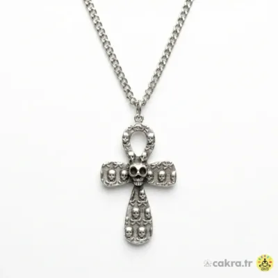 Ölümsüz Yaşamın Anahtarı: Kurukafa İşlemeli Ankh Döküm Gotik Kolye